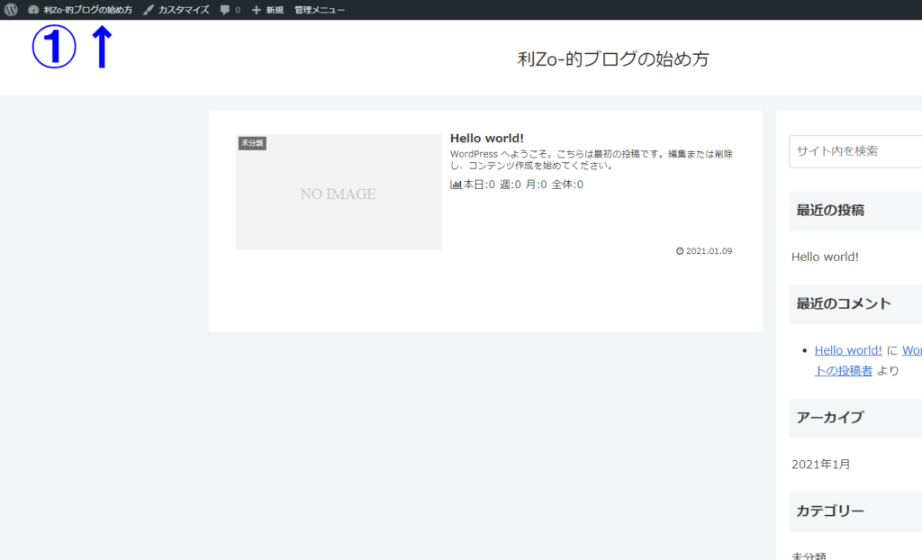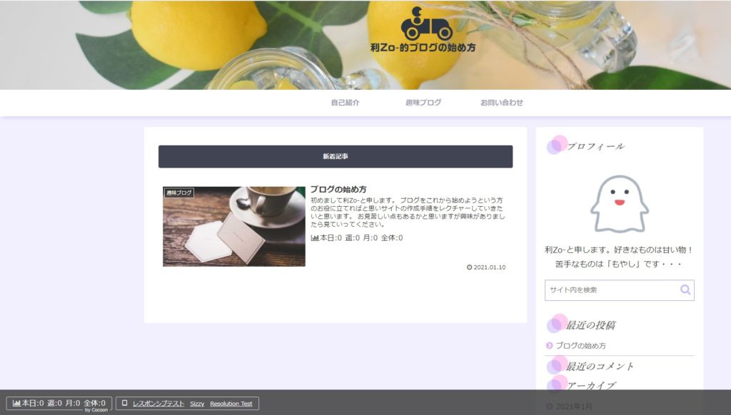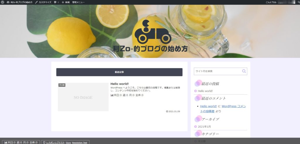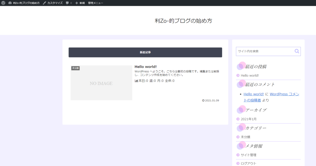 左上のブログタイトルをクリックしてトップページに移動してみましょう。