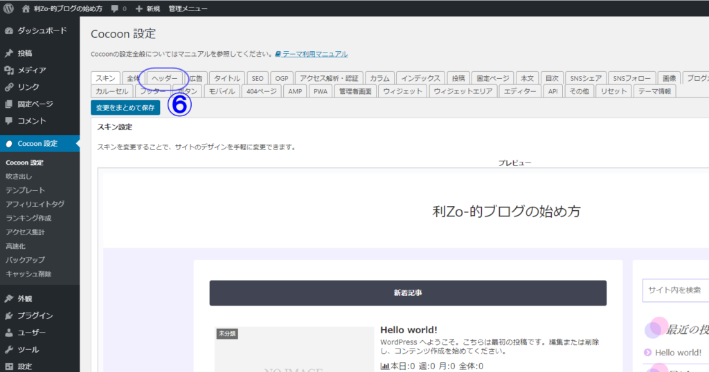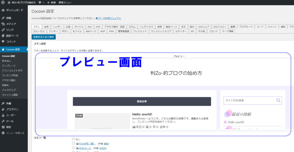 9・それではWordPressに戻ってCocoon設定の画面に入ってください。