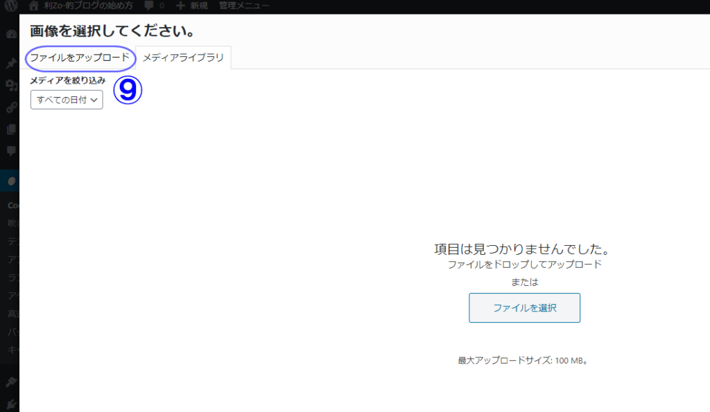 13・アップロード画面の真ん中にある「ファイルを選択」ボタンを押します。