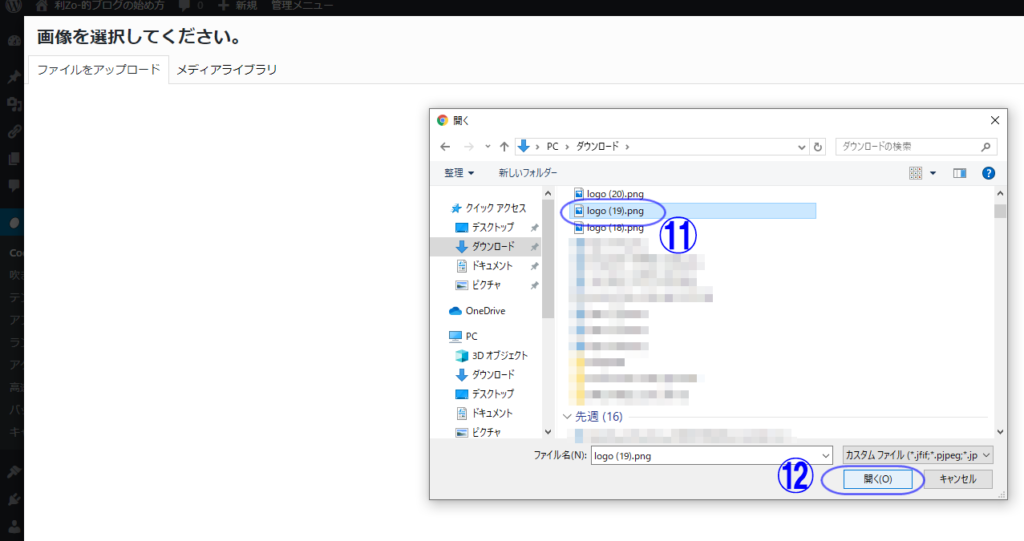 14・先ほど作った⑪ロゴのファイルを選択します。