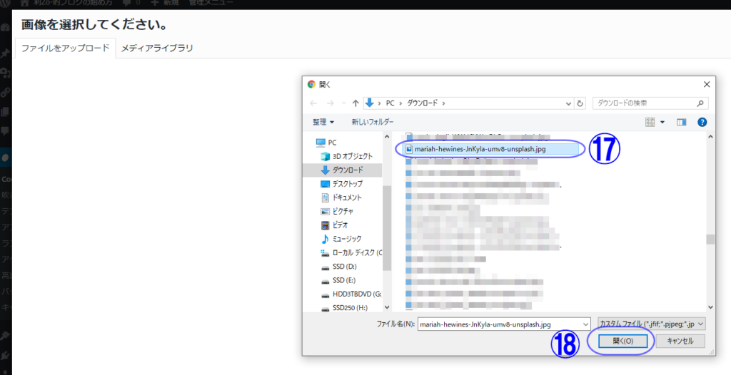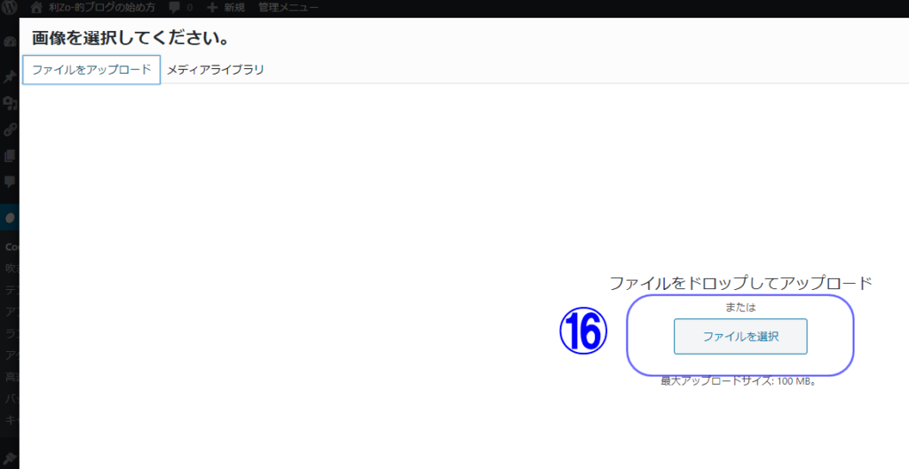 19・真ん中の⑯「ファイルを選択」ボタンを押します。