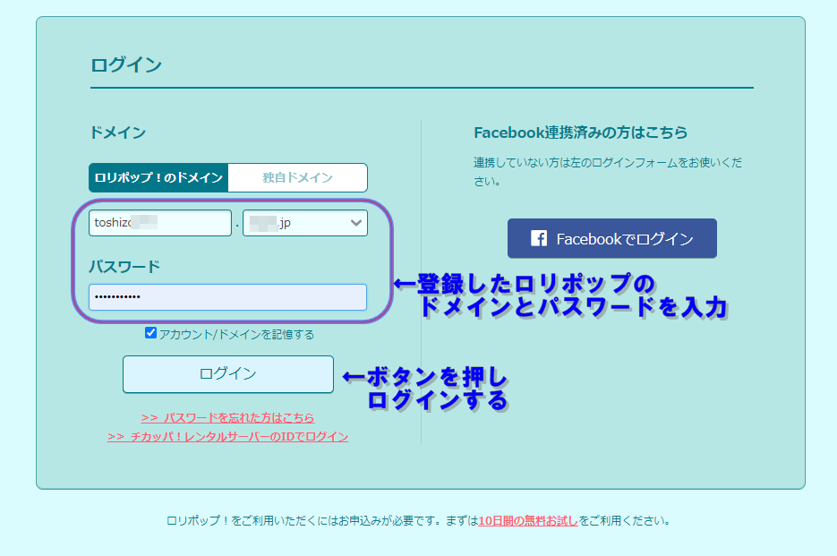 - ロリポップ・レンタルサーバーのユーザー名とパスワード